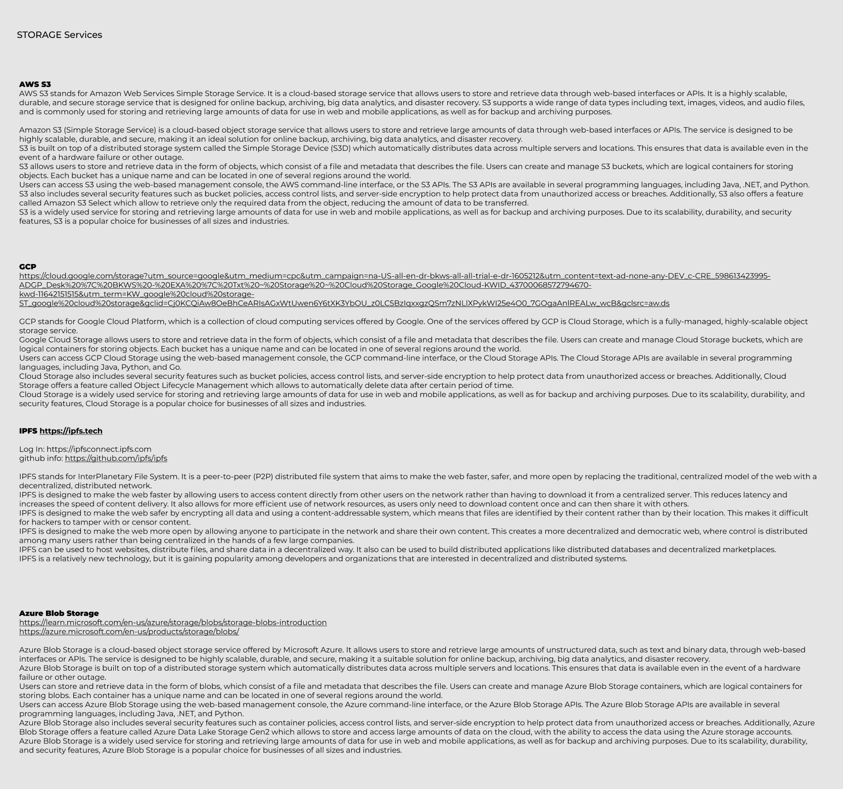 Bring his/her own AWS S3, Azure Blob Storage, and IPFS.