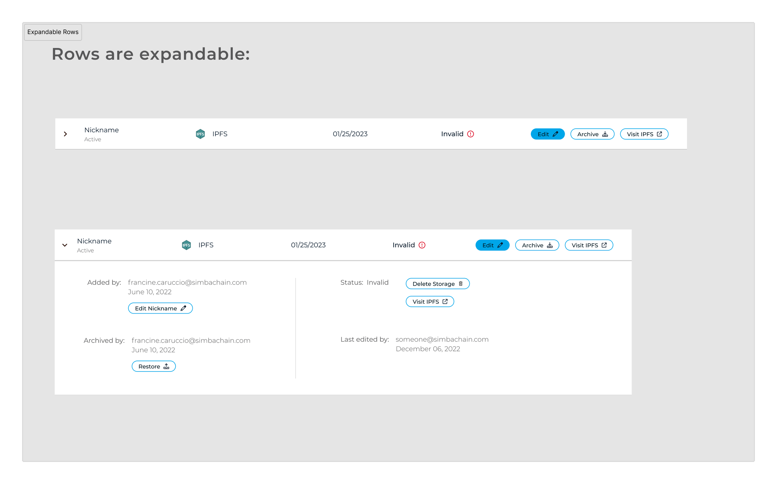When expanded, each row needed to contain certain information about the respective storage solution and include possible actions the user may want to take.